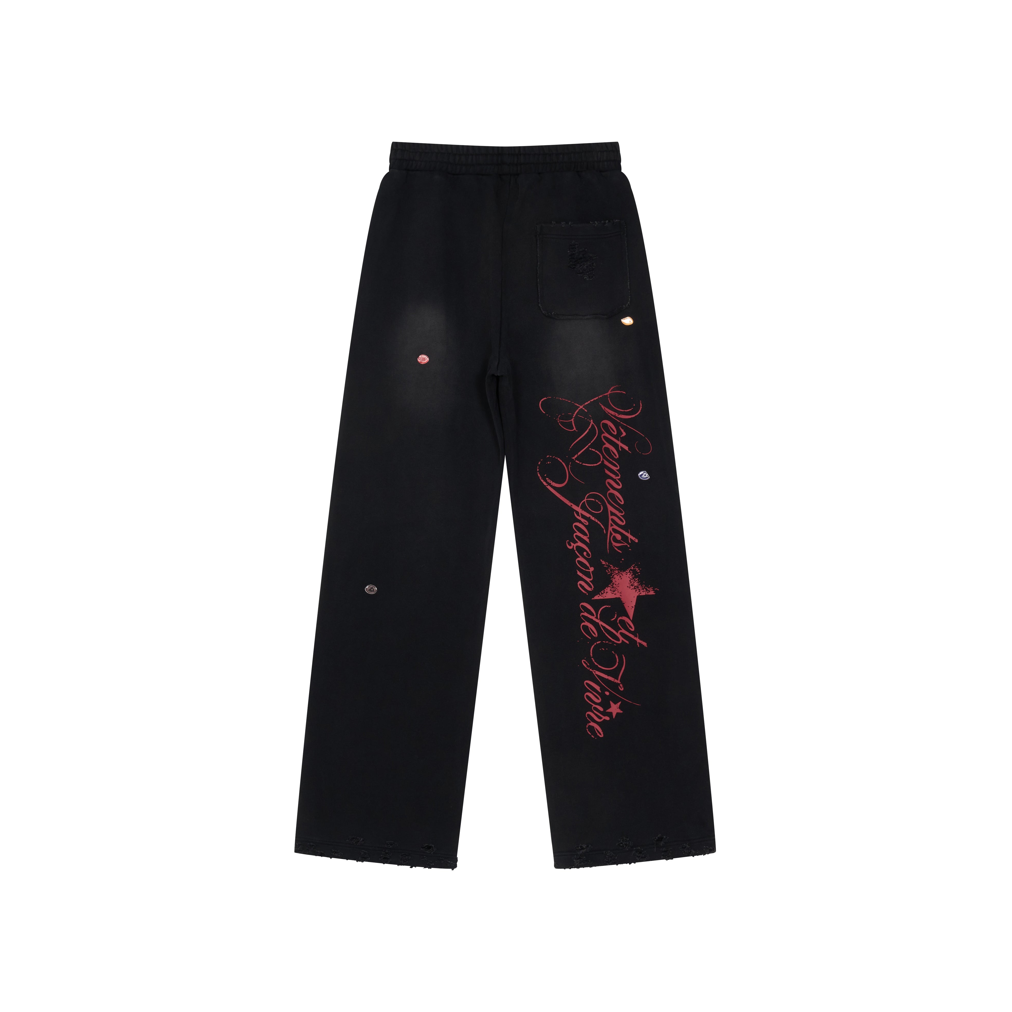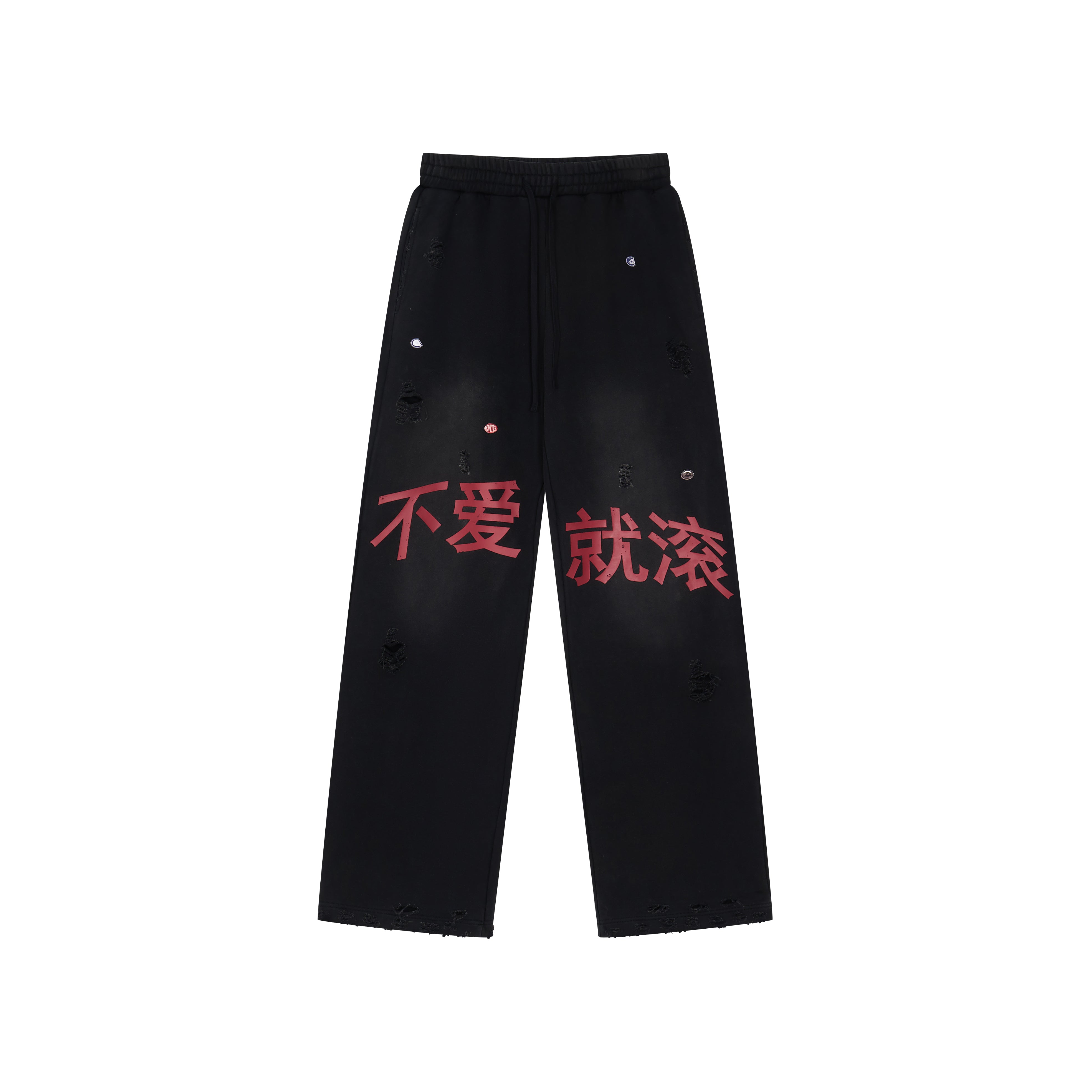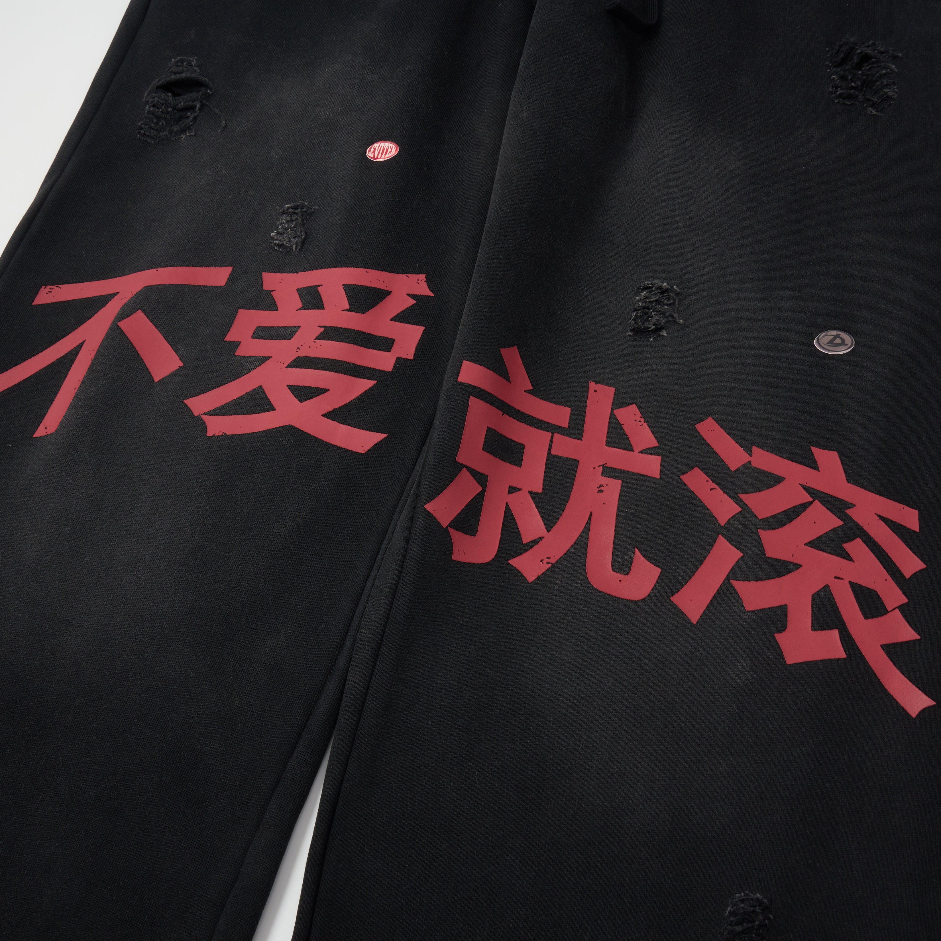 “Love Me or Leave” Distressed Wide-Leg Sweatpants