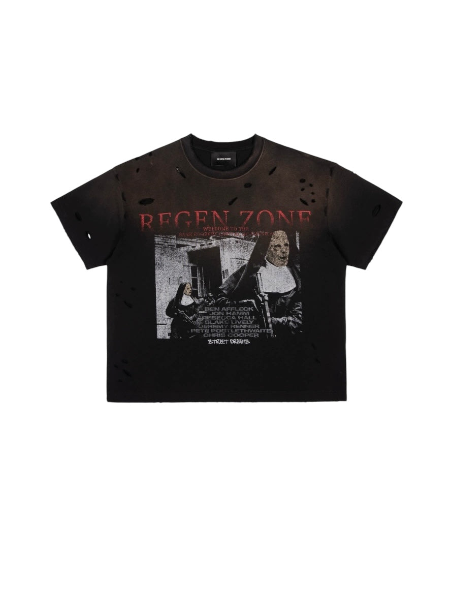REGEN ZONE 25SS “RIOT” Vintage Distressed Nun Graphic Tee – 06